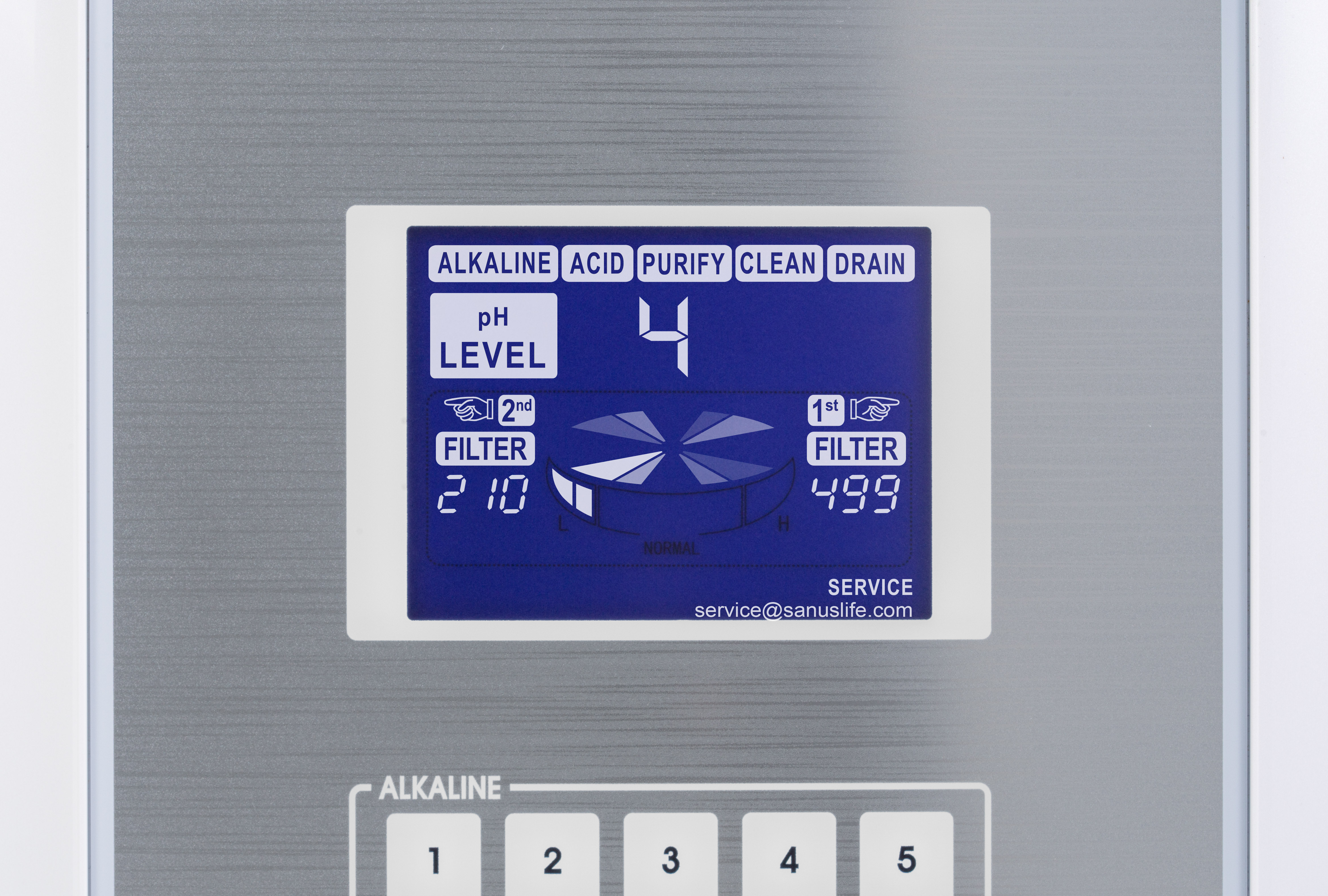 Das stabile, aus Keramik gefertigte Drehventil, verpackt unter einem hochwertigen Kunststoffgehäuse, erleichtert das Ein- und Ausschalten des ECAIA ionizer S. Zudem ermöglicht es eine präzise, per LCD-Display angezeigte Regulierung und Optimierung der Durchflussgeschwindigkeit. Das mechanische Ventil bietet aber noch einen weiteren, wesentlichen Vorteil: Das Gerät filtert das Wasser auch ohne Strom. Ein entscheidender Grund dafür, warum sich SANUSLIFE INTERNATIONAL bewusst gegen ein Elektroventil entschieden hat. Denn wie der Name schon verrät, funktioniert ein Elektroventil nur mit Strom. Bei Stromausfall fließt kein Wasser. Somit kann das Gerät bei Stromausfall nicht genutzt werden. Hinzu kommt, dass Elektroventile schnell verkalken. Neben der mechanischen Lösung bietet auch das Material des Ventils einen Vorteil. Keramik ist robust und äußerst langlebig. Ein Beweis mehr dafür, dass bei der Produktion nichts dem Zufall überlassen wurde.