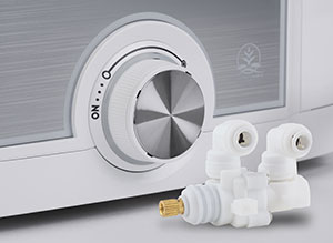 Festinstallation muss nicht immer unflexibel sein. Der ECAIA ionizer beweist, dass er trotz Festanschluss an Flexibilität und Bequemlichkeit nichts einbüßt. Man kann den ECAIA ionizer auf die Arbeitsfläche neben der Spüle stellen, oder ihn platzsparend hinter der Spüle an der Wand befestigen. Die seitlich installierten Filter ermöglichen auch dann einen problemlosen Wechsel. Variable Anschlüsse ermöglichen es, den ECAIA ionizer direkt am Wasserhahn oder am Eckventil - unter der Spüle - anzuschließen.